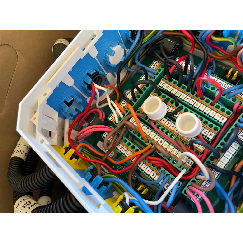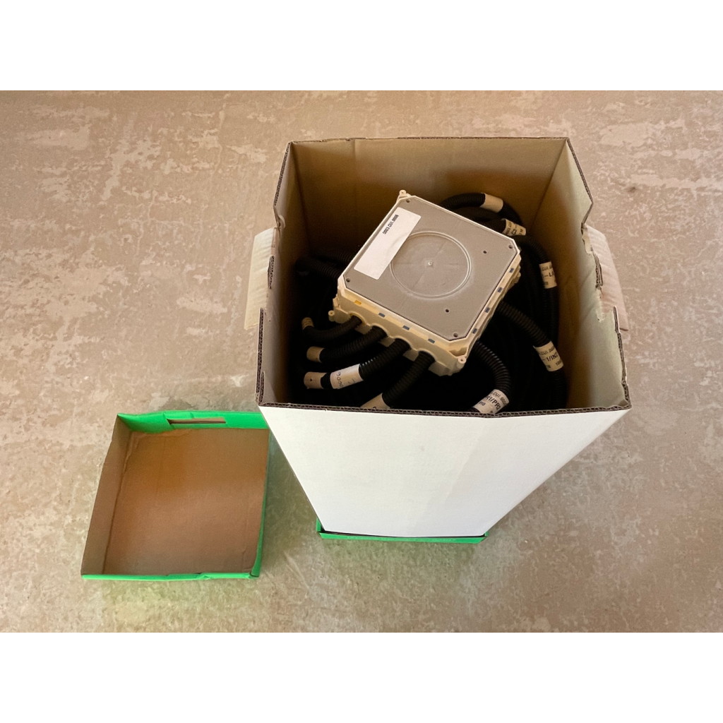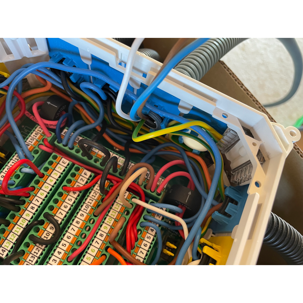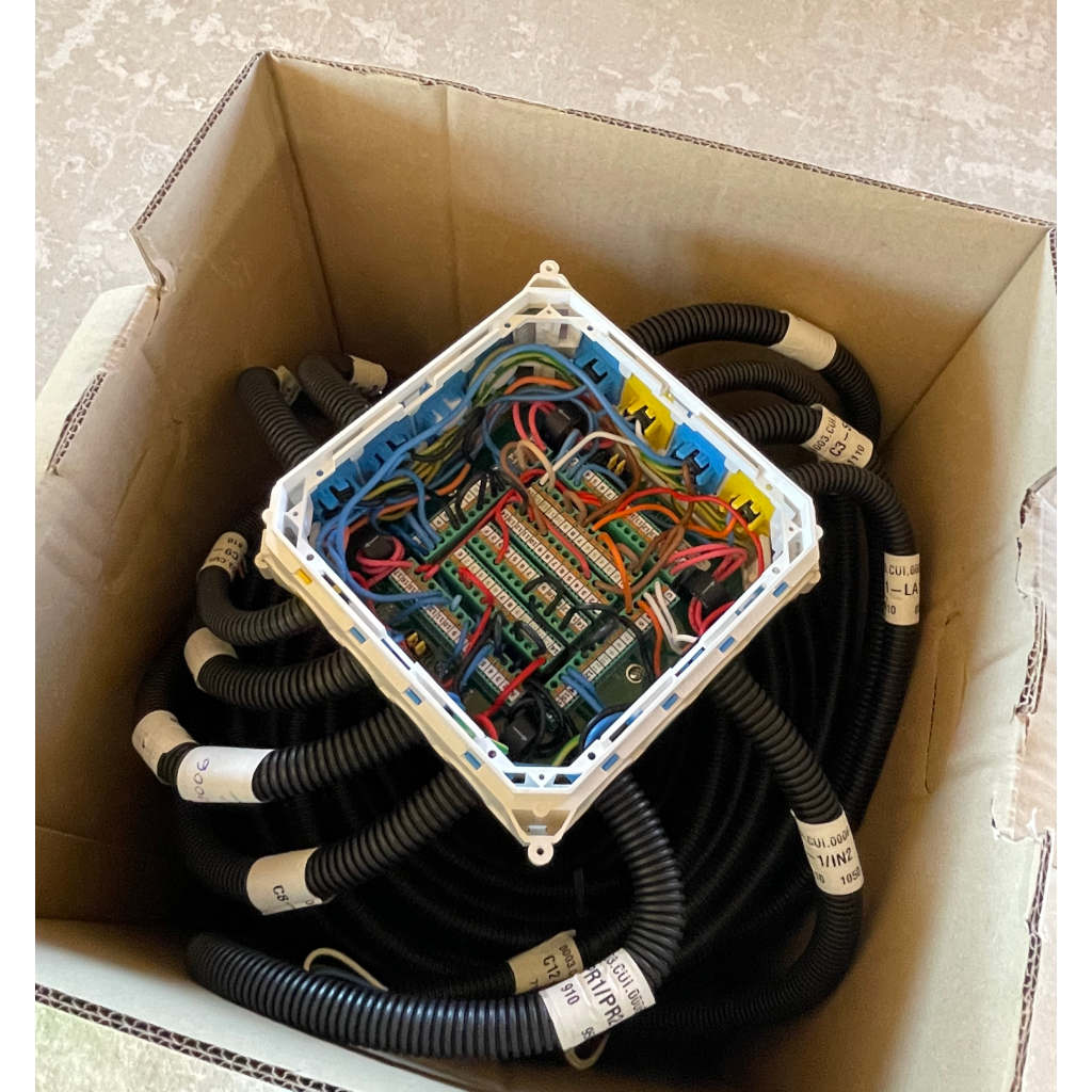 - Vous ouvrez le couvercle du haut(donc du fond) pour dérouler les gaines (alimentations en premiers, puis les autres).