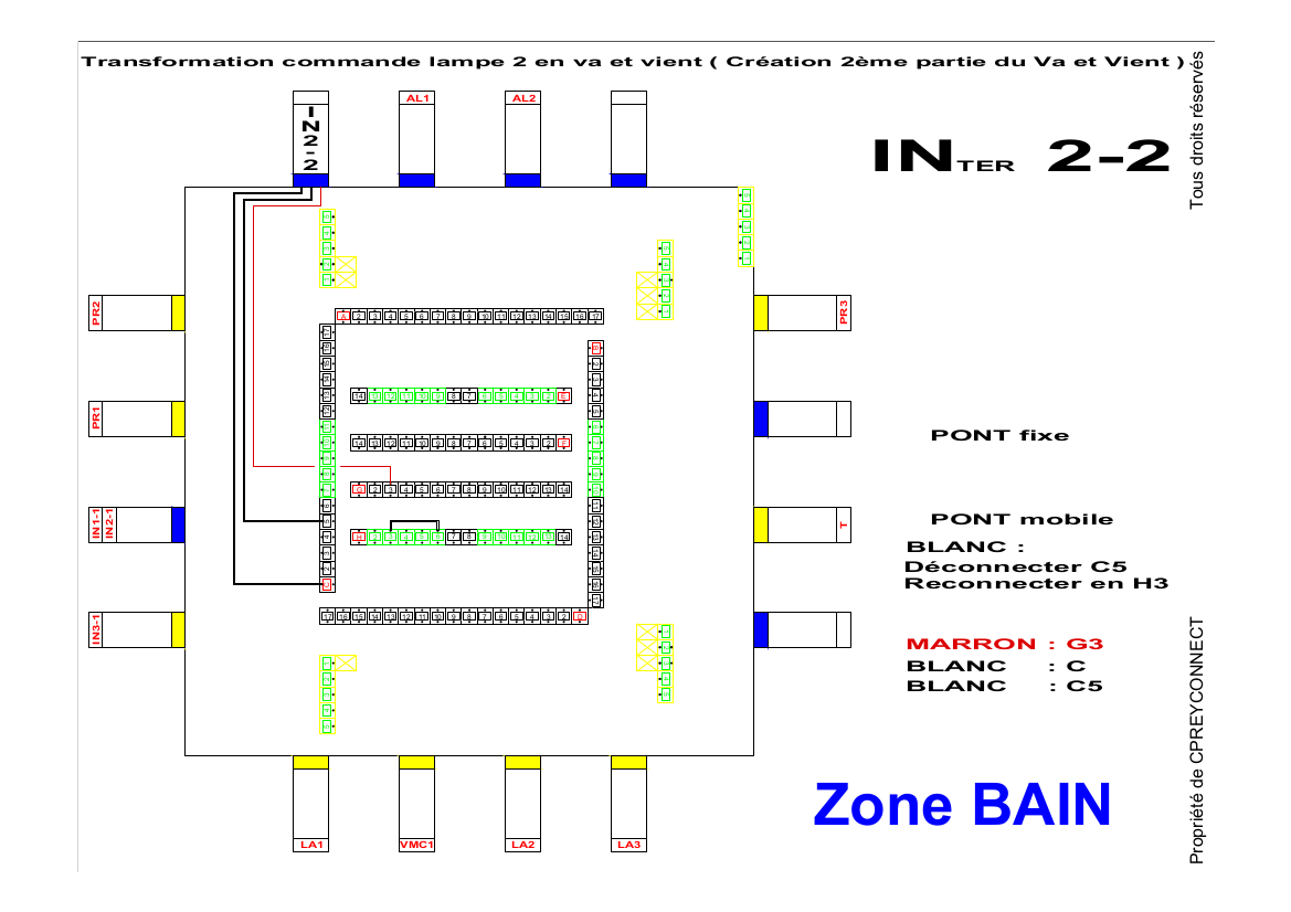 Si vous avez une gaine de 16 vous pouvez utiliser 1 des 4 adapteurs de gaines 20/16 fourni avec la pieuvre. - Pont mobile : Déconnecter le fil C5 pour le reconnecter en H3