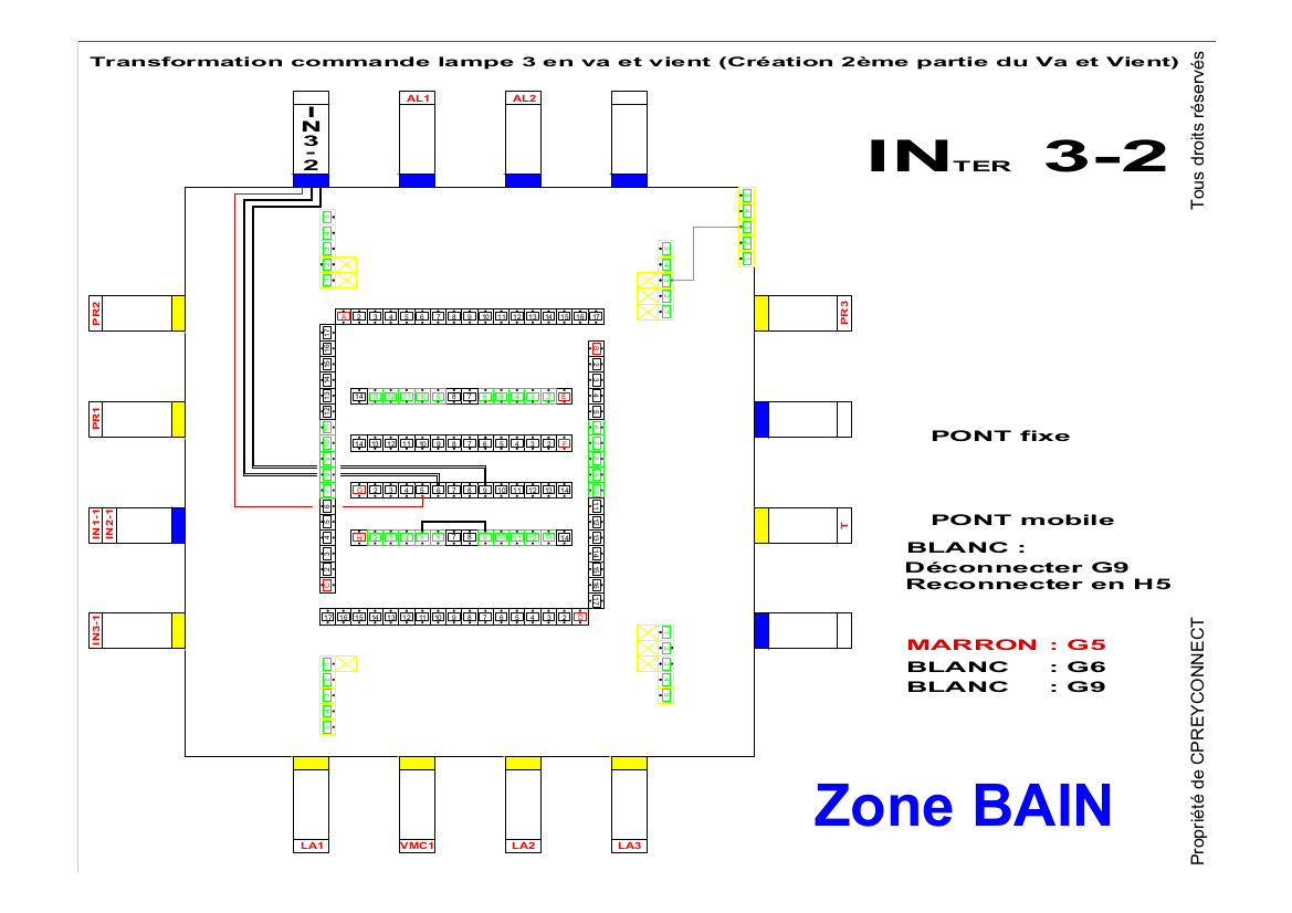 Si vous avez une gaine de 16 vous pouvez utiliser 1 des 4 adapteurs de gaines 20/16 fourni avec la pieuvre. - Pont mobile : Déconnecter le fil G9 pour le reconnecter en H5