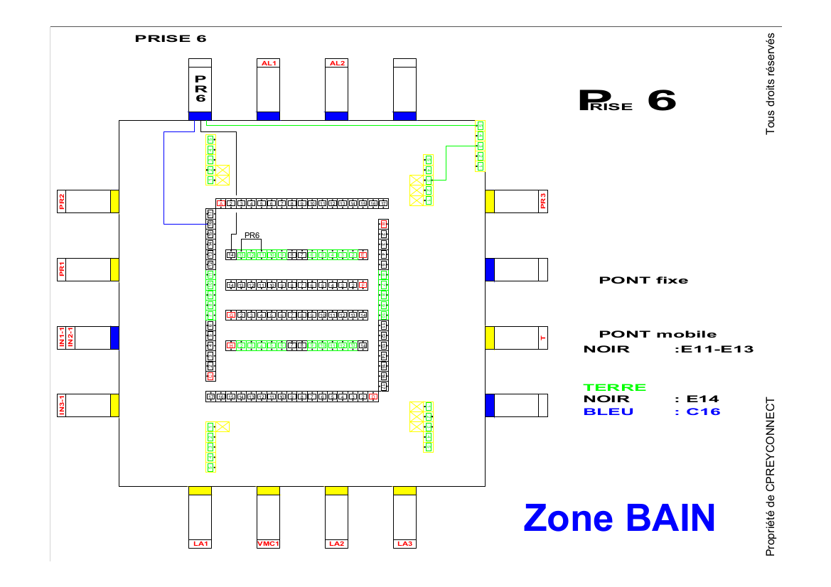 Pour installer une prise 6 en position 1 utilisez le câblage suivant :